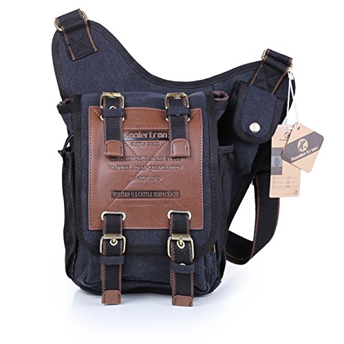 KAUFEN Koolertron Vintage Canvas Shoulder Messenger Bag Sling Militärschule Taschen militärische Leder Patchwork Messengerbag, großer Geburtstag Weihnachtsgeschenk für Familien und Freunde (schwarz)