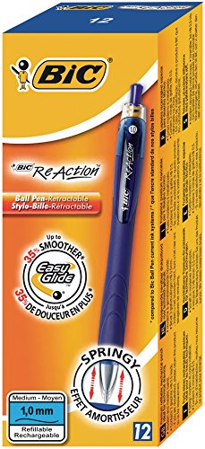 BIC Druckkugelschreiber ReAction, 0.4 mm, mit gefederter Spitze, Schachtel à 12 Stück, blau