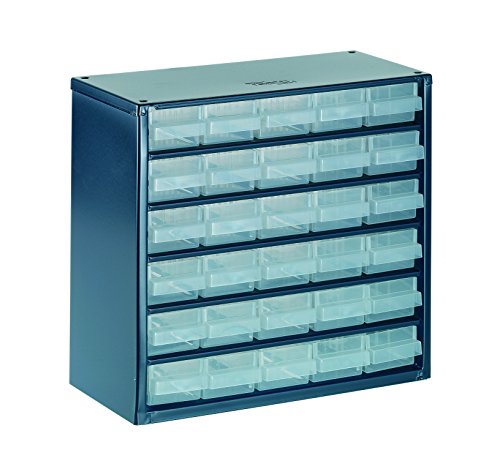 Die 30 leichte und robuste Schubladen können durch Trennwände unterteilt werden (als Zubehör erhältlich) in bis zu 4 Fächern. Beschriftungsetiketten sind nicht enthalten.