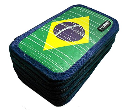 Komplett-Set Großraum Briefpapier-Feder 3 Scharniere Tasche Cool Federmäppchen 46 Stück mit Druckbleistift Schere , Bleistift, Stift Radiergummi Lineal Angles Farbstift Farb Geist (Brazil_flagge)
