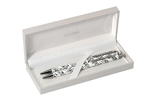 - das perfekte ideales Geschenk für Musikfans, die Mandarin: weiß Kugelschreiber und Druckbleistift mit Noten im Set mit eleganten Sekt gravierten Ornamenten und sind in silberfarbenen Geschenkkarton