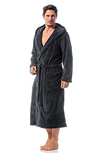 KAUFEN Bugatti, Bademantel mit Kapuze aus Microfaser für Herren, M bis XXL, anthrazit Large anthrazit
