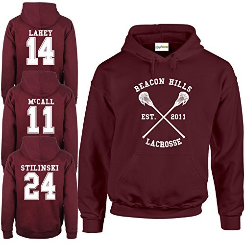 Beacon Hills Lacrosse HOODY Wolf 11 Teenager McCall S-2XL - Männer, Maroon, M