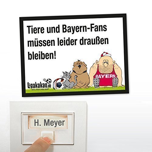 Klar! Verständlich! Bleiben Sie draußen! Das Verbot des Zugangs für die Bayern-Fans gehört jeder Tür zu. Schalke, Dortmund und alle Fußballfans schützt Haus und Hof vor unerwünschten Zugriffen von Fans aus dem falschen Verein. Ein wetterVerteidigung Produkt für innen und außen. Schaumplatte (3 mm) Wetter / Geeignet für den Einsatz im Freien. / Maße: 10 x 7,5 cm "Leider müssen wir draußen bleiben" Jingle Taps Bayern zum Schutz von Haus und Hof ungeliebten Bayern-Fans