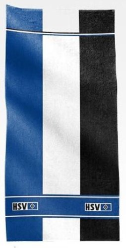 der Hamburger SV Handtuch '3 Streifen', die drei Clubfarben von HSV im Vordergrund.