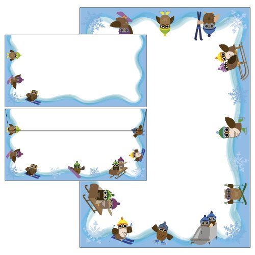 Briefpapiermappe - Eulen beim Wintersport 40-teilig 20 Blatt Briefpapier + 20 Stück Briefumschläge DIN lang ohne Fenster 5591+6591